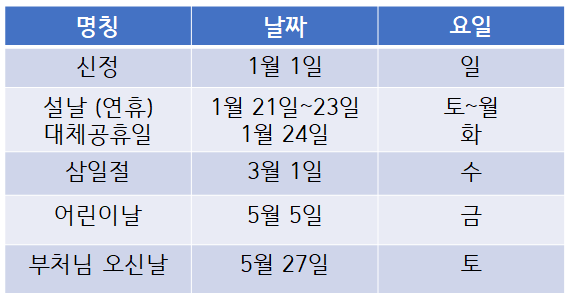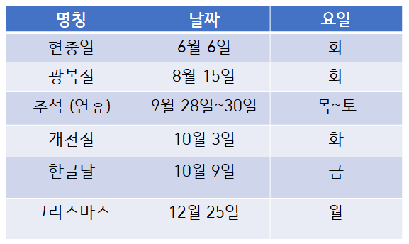 2023년에는 크리스마스와 석가탄신일에 쉴까요?
