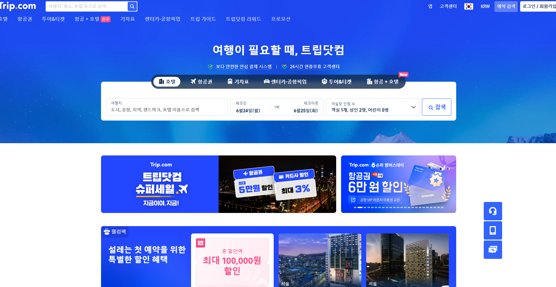 저도 VIP 회원 혜택을 받고 저렴하게 여행을 다녀왔답니다. 꼭 로그인해서 VIP 여부를 확인해 보세요!