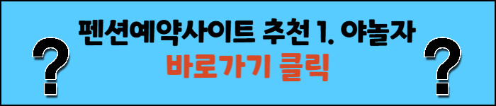 지금부터"가장 저렴한 펜션 예약사이트 추천 Best 10-사이트별 장단점 및 이용후기" 포스팅 시작하겠습니다.