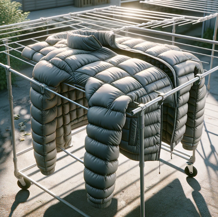건조 중간중간 패딩을 털어 깃털이 고르게 분포되도록 합니다.