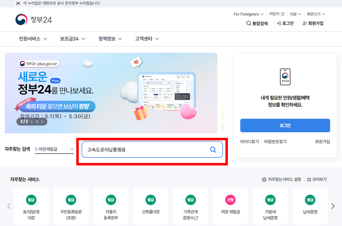 정부24에서도 차량번호만 있으면 미납 통행료를 확인할 수 있어요. 단, 본인 명의 차량만 가능하다는 점 잊지 마세요.
