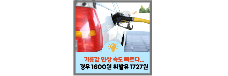 지급부터 "기름값 인상 무섭네... 언제 이렇게 올랐지? 리터당 경유 1600원, 휘발유 1727원 돌파" 포스팅 시작하겠습니다.