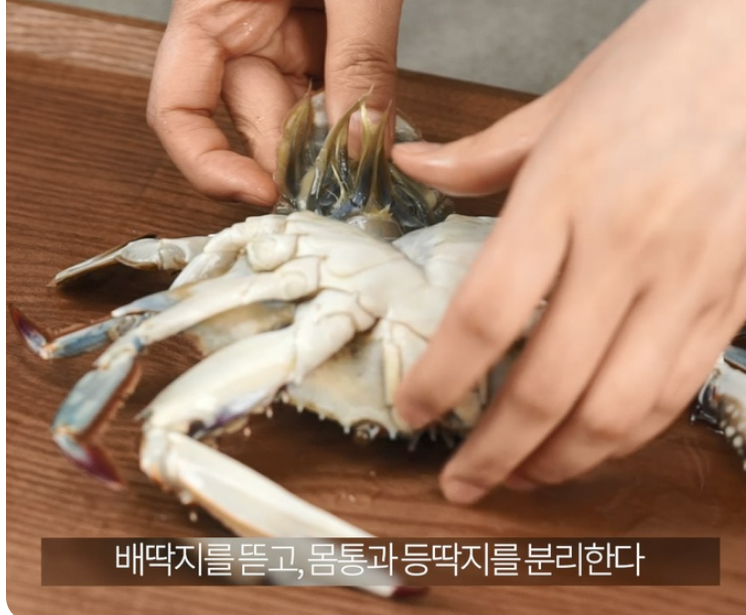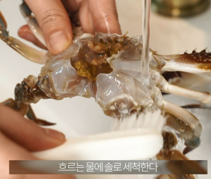 2. 꽃게: 등딱지를 떼고 내장을 제거한 다음 솔로 깨끗이 씻으면 끝~