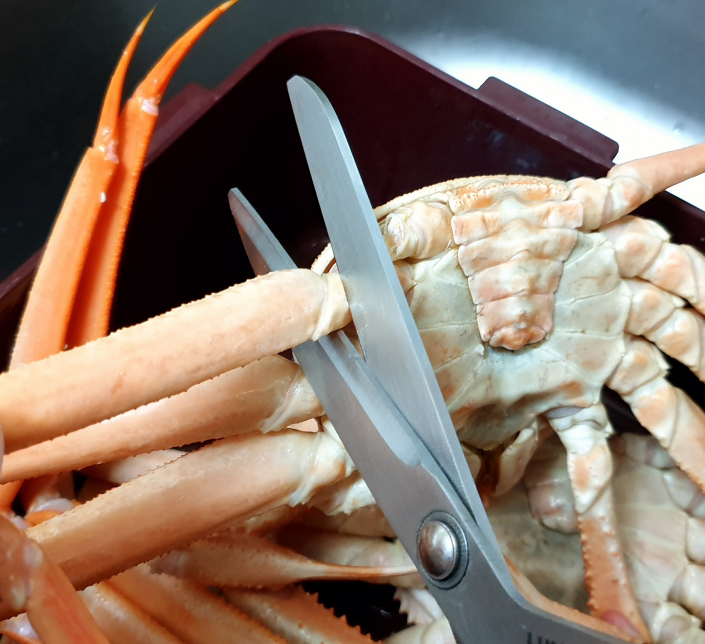 1. 대게: 다리와 몸통을 분리하고, 다리를 가위로 잘라내 속살을 발라드세요. 게딱지에 남은 게장으로 밥 비벼 먹으면 진짜 최고!