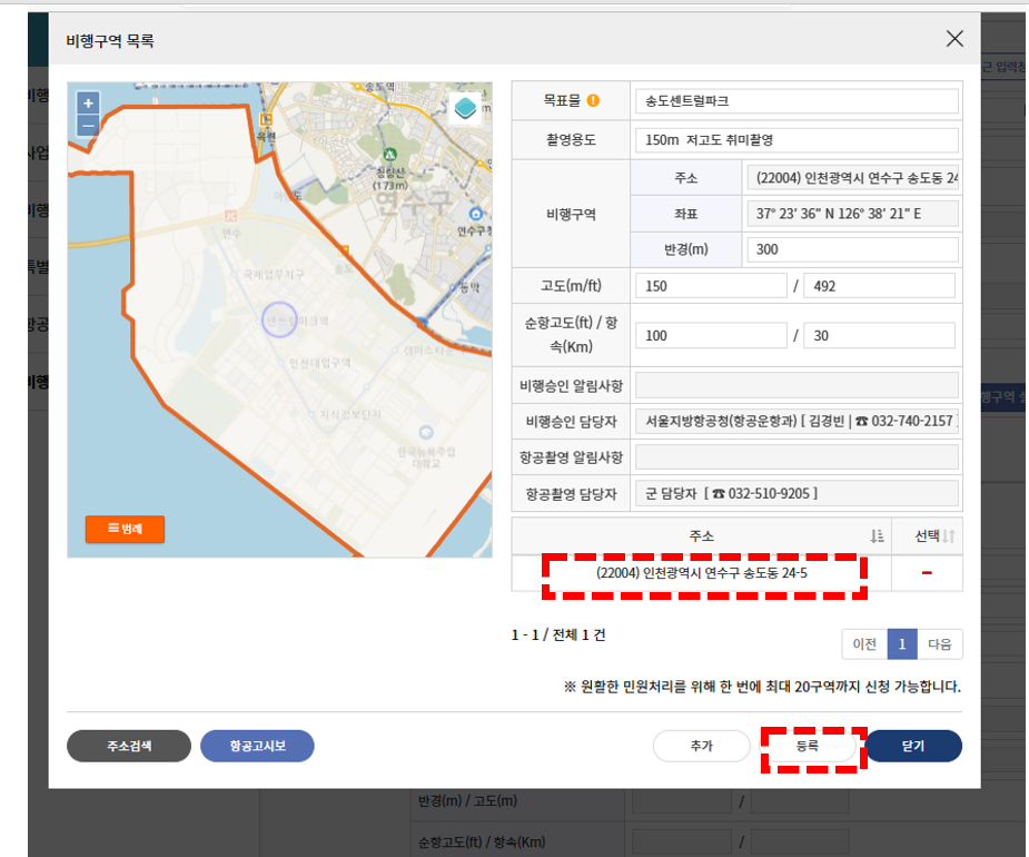 항공촬영 허가를 원스톱으로 신청하면 비행장 주변의 보안시설(댐, 교량, 전력 관련 시설, 항만, 청와대, 각종 군사시설 등)을 확인할 수 있습니다.