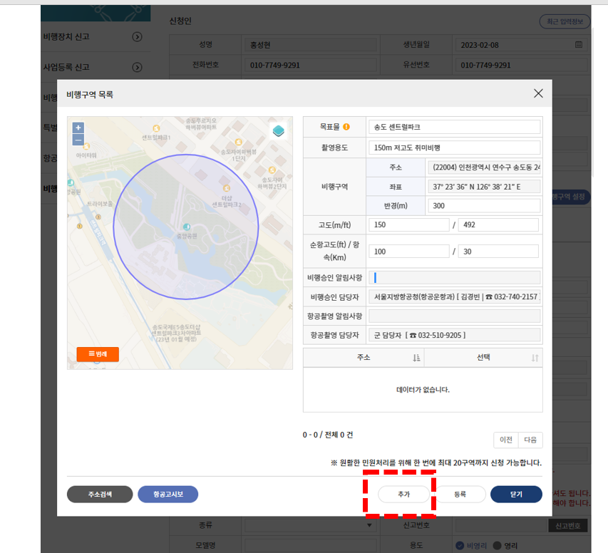 그리고 아래 비행구역은 우측 상단에 비행구역 설정을 눌러주세요.