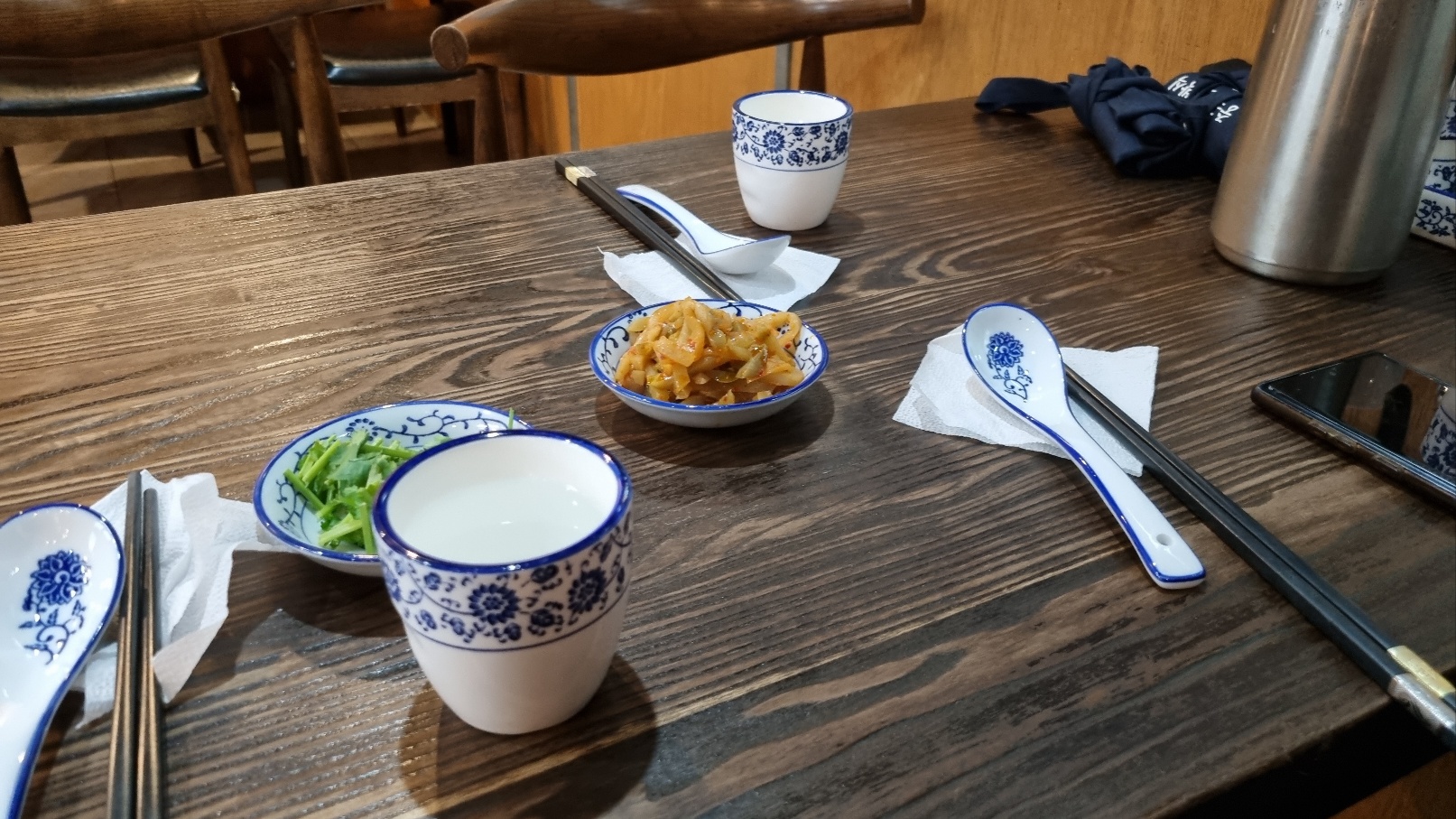 저희는 우육면 3개와 가지튀김을 시켰습니다. 기본 찬으로는 우육면에 들어가는 고수와 자차이 딱 2개가 나옵니다. 기본 반찬이 너무 간소(?)하지만 제일 중요한 건 메인 음식 아니겠습니까?