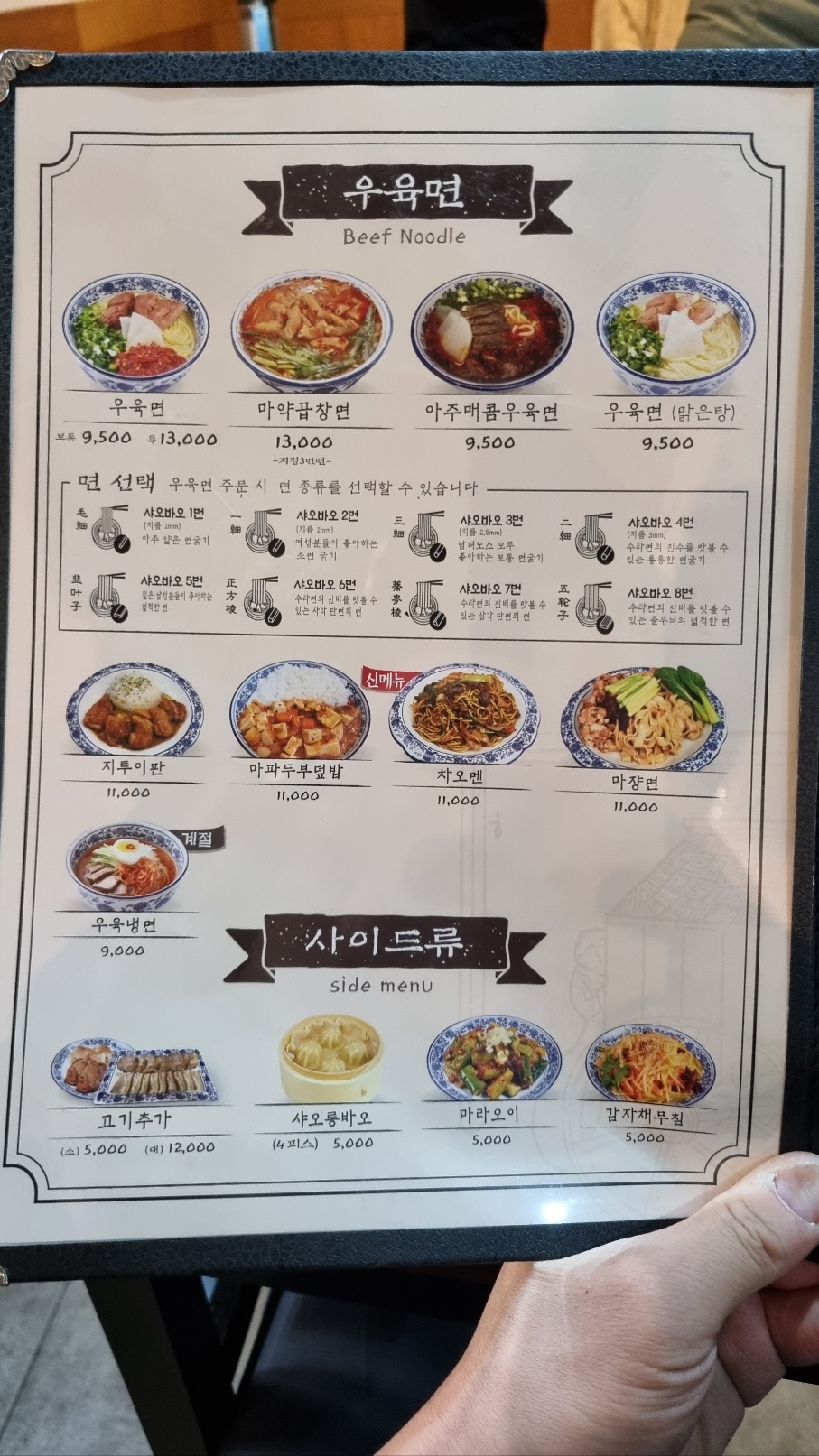 우육면 안에 들어간 고기도 두툼해서 씹는감이 좋았고요. 면발을 가게에서 직접 만드는 수제면이고, 면 굵기를 고를 수 있었습니다. 이번에 시킨 면굵기는 보통으로 많이 시키는 면굵기였는데, 다음에 올 때는 좀 더 굵은 면을 먹어보고 싶네요.