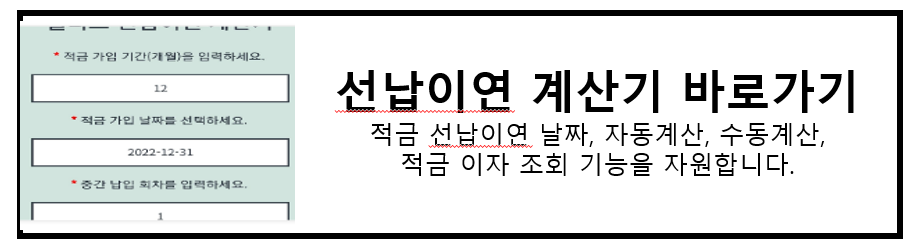 직접 선납 이연 계산기를 이용해 이율을 확인해 보고싶으신 분들은 아래를 클릭하시기 바랍니다.