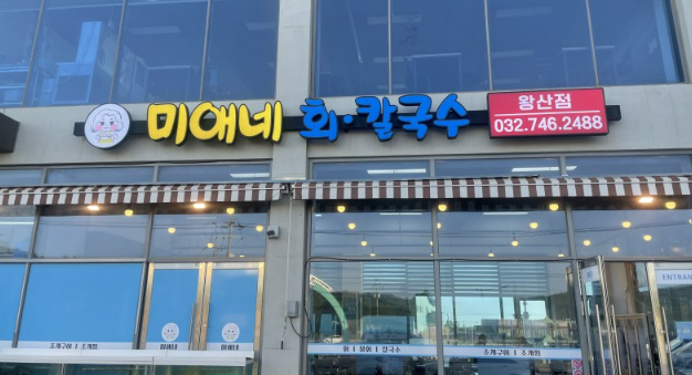 미애네칼국수는 건물 크기가 상당하여, 방문객들에게 넉넉한 주차 공간을 제공합니다. 바다 바로 앞에 위치해 있어 피서철에는 특히 붐비는 곳입니다.