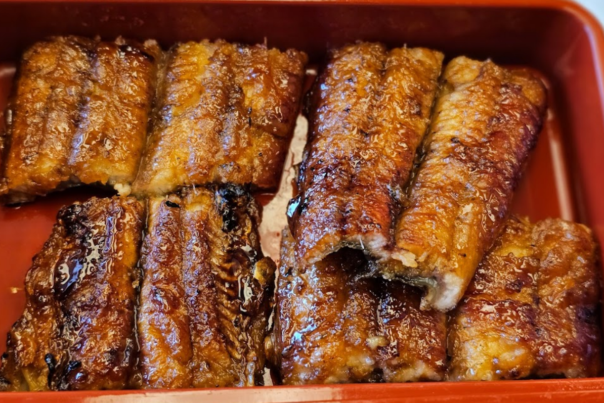 우나기동: S, M, L 사이즈로 제공되며, 장어구이 조각 수에 따라 선택할 수 있습니다. 장어구이는 부드럽고 입에서 살살 녹는 질감이 특징입니다.