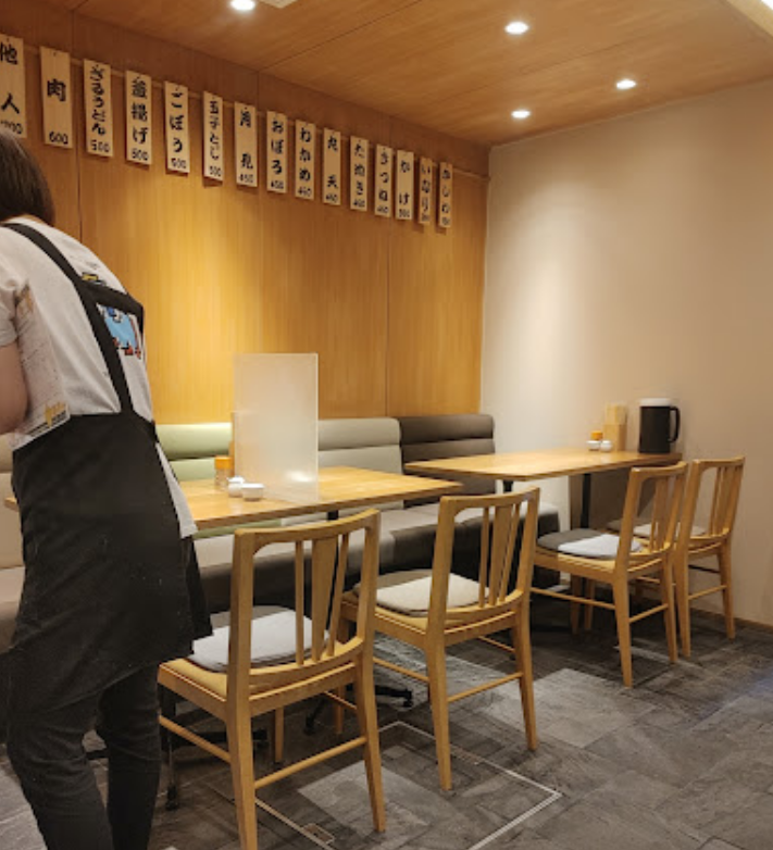 메뉴는 우동이 주력이며, 우엉튀김우동(700엔)과 어묵우동(450엔)이 인기 메뉴입니다.