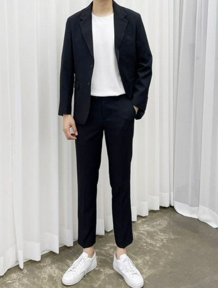 이 때 입고 있는 옷 위에 검정색 재킷이나 코트를 걸치거나, 정장 팬츠를 착용하면 좋습니다. 또한,
