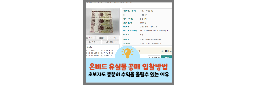 사이트 내에서 물품의 상태, 입찰 기간, 낙찰가 등을 상세히 확인할 수 있어 초보자도 쉽게 이해하고 참여할 수 있습니다.