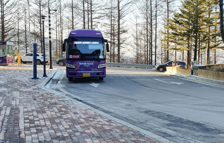 하이원스키장은 셔틀버스가 잘 운영돼서 차 없이도 편리하게 이용할 수 있어요.