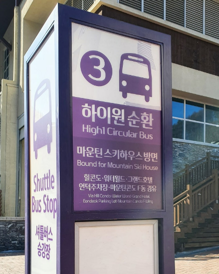 2)정류장 위치: 마운틴스키하우스 1층 입구, 마운틴콘도 F동 등