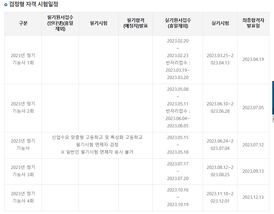 2. 타일기능사 시험일정