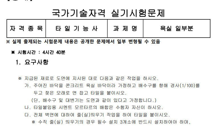 3. 타일기능사 시험 유형
