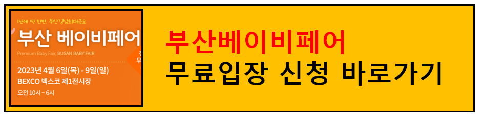 오늘은 2023 부산베이비페어에 대해서 알아봤습니다. 이번에 진행하는 베이비페어는 다양한 할인혜택이 있으니 꼭 필요하신 육아욕품이 있다거나 선물하시려고 하시는 분들은 이번에 방문해서 할인받아서 저렴하게 육아용품을 구입하시기 바랍니다.