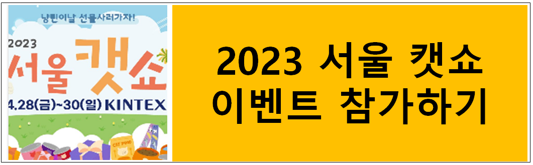 2023 서울캣쇼란 반려묘와 집사분들을 위한 행사로 2023년 4월 28일 금요일부터 4월 30일 일요일까지 진행되는 행사입니다.