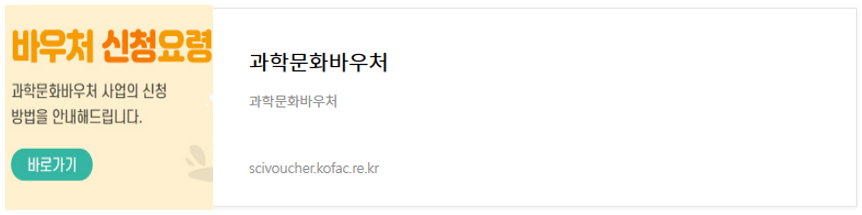 과학문화바우처 홈페이지에 접속하길 원하시면 여기를 클릭해 주시기 바랍니다.