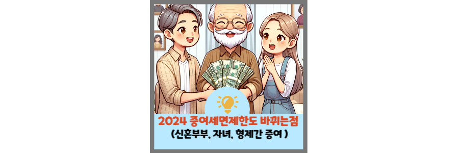 지금부터"2024년 증여세면제한도 상향 자세히 알아보기(신혼부부, 자녀, 형제간 증여세면제한도 상향)" 포스팅 시작하겠습니다.