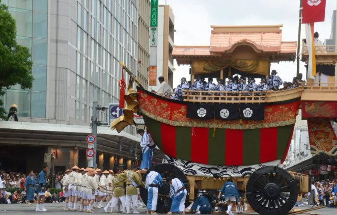 -야마호코: 축제의 백미인 야마호코 순행은 '움직이는 미술관'으로 불리우며, 고급스러운 미술 공예품으로 치장된 거대한 수레가 도심을 행진합니다.