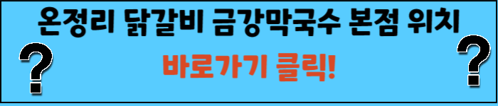 5-1 온정리 닭갈비 금강막국수 본점: 숯불에 구운 닭갈비와 함께 메밀쌈을 즐길 수 있는 곳입니다. 닭갈비의 매콤한 맛과 메밀쌈의 담백함이 잘 어우러져요.