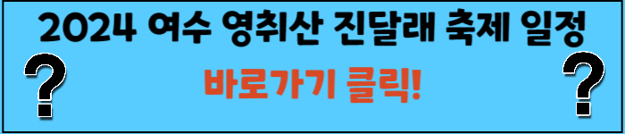 | 여수 영취산 진달래 축제 2024, 영취산 진달래 개화시기, 등산코스 정리- 영취산 근처 맛집 추천 (1) | 2024.03.16 |