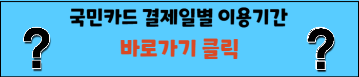 현대카드뿐만 아니라 신한카드 결제일별 사용기간, 삼성카드 결제일별 사용기간, 우리카드 결제일별 사용기간, 국민카드 결제일별 사용기간 등도 결제일에 맞춰 사용 기간이 달라집니다.