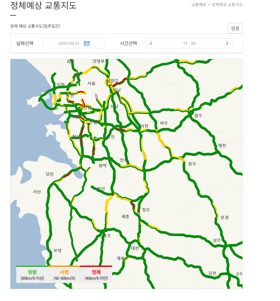 추석연휴기간 고속도로 정체구간 확인하시려면 아래 홈페이지에서 확인 바랍니다.