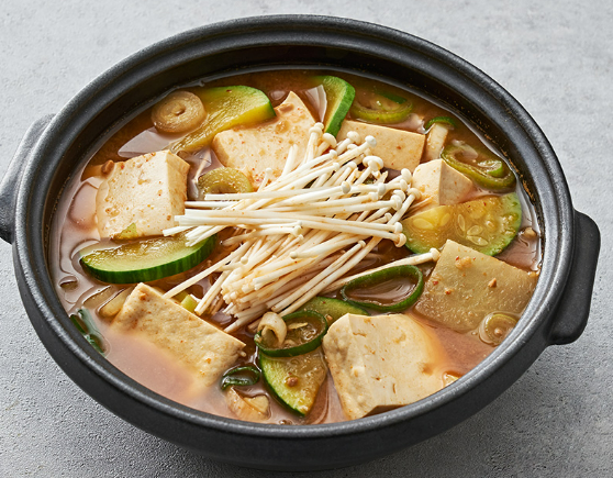 콩고기는 콩을 이용해 만든 식물성 고기로, 비건들도 마음껏 먹을수 있는 전통된장찌개와의 조합이 훌륭합니다.