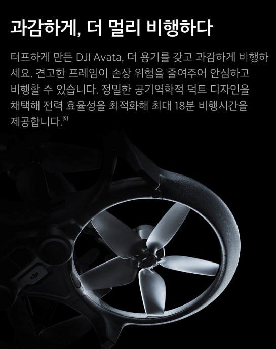 AVATA 드론은 DJI사에서 출시한 'cinewhoop' 드론으로, cinematic 비디오 촬영에 중점을 둔 FPV 서브 장르의 드론입니다.
