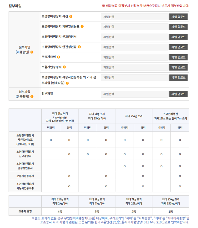 해당되는 기체 제원표를 받으셔서 첨부하시면 되겠습니다. 혹시라도 제원표 사진이 문제가 있어서 허가가 안되었다면, DJI 공식 사이트를 기체별로 링크를 걸어놨으니 들어가서 직접 스샷을 찍으셔서 첨부해 보시기 바랍니다.^^